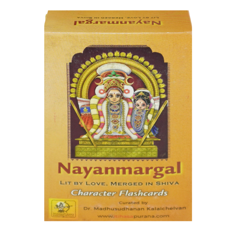 Step into the world of the 63+12 Shaiva saints of Tamil Nadu with our beautifully curated Nayanmargal Flashcards. Each pack contains 75 hand-painted cards, celebrating saints who lived with boundless love for Lord Shiva. These flashcards preserve their stories in a way that is both inspiring and easy to understand for all ages.