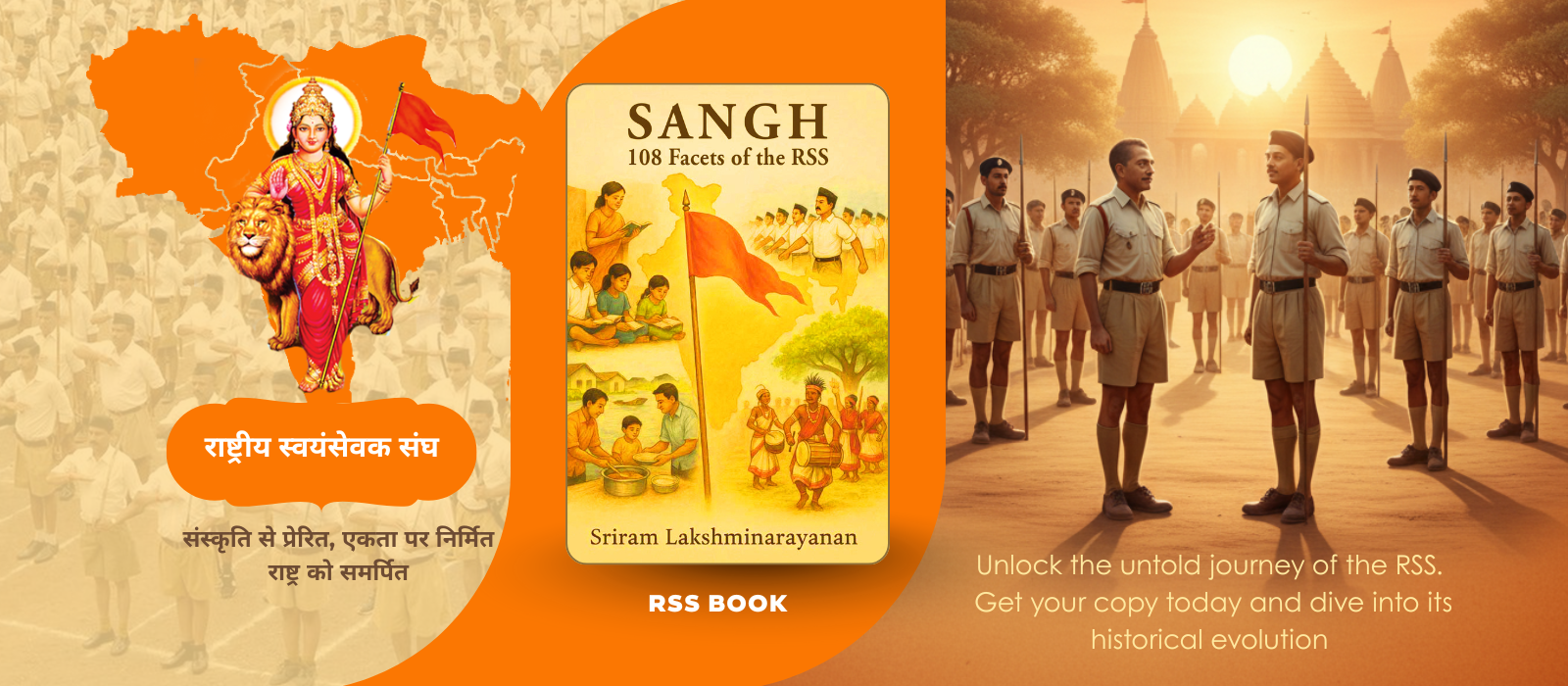 Sangh: 108 Facets of the RSS explores the Rashtriya Swayamsevak Sangh in its centenary through 108 concise chapters on philosophy, history, shakhas, service work, and national unity, self-reliance, dharmic duty.